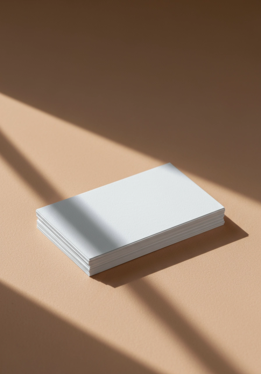 business card mockup kept on a table with a nude color background and with sunlight on the business card