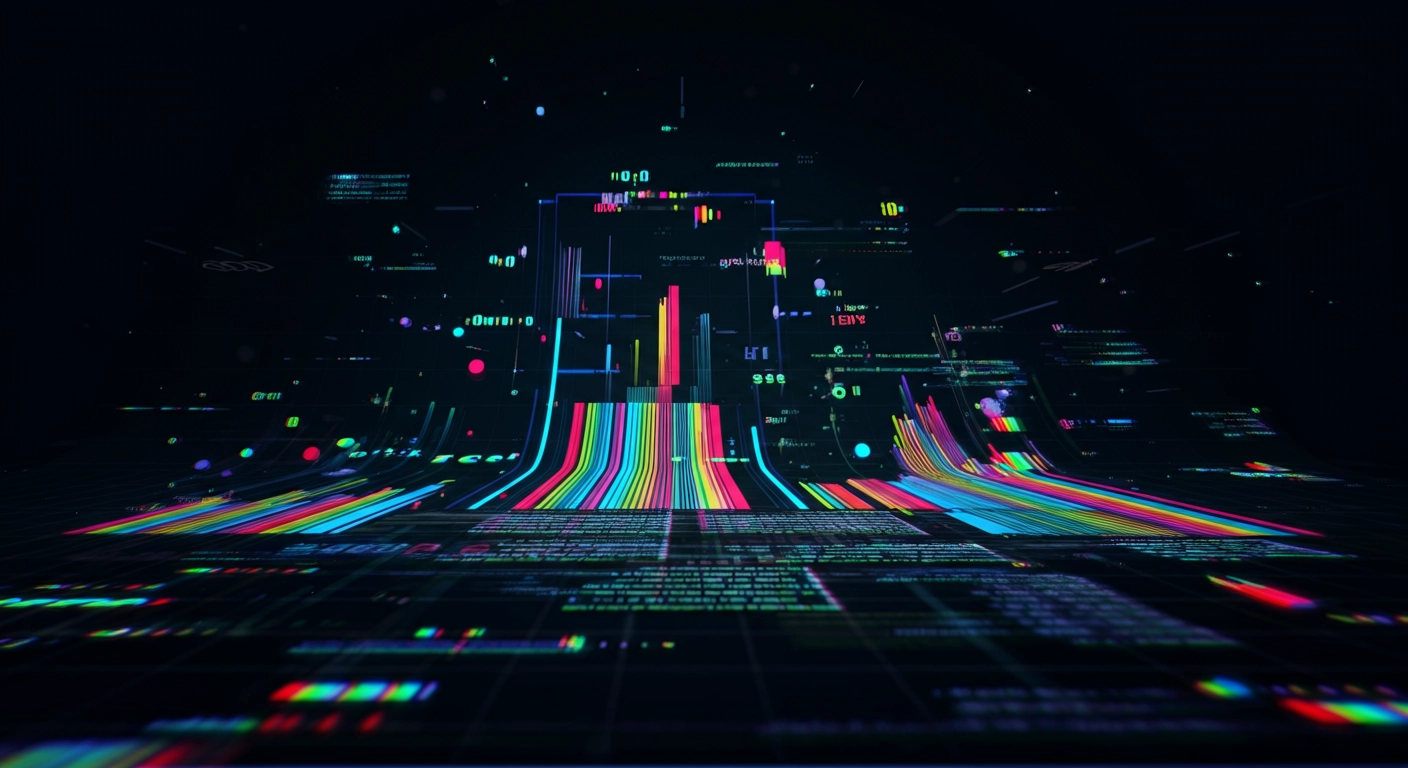 a perspective grid of minimal lines like a spreadsheet. the data can be edited for sales demo and is magical