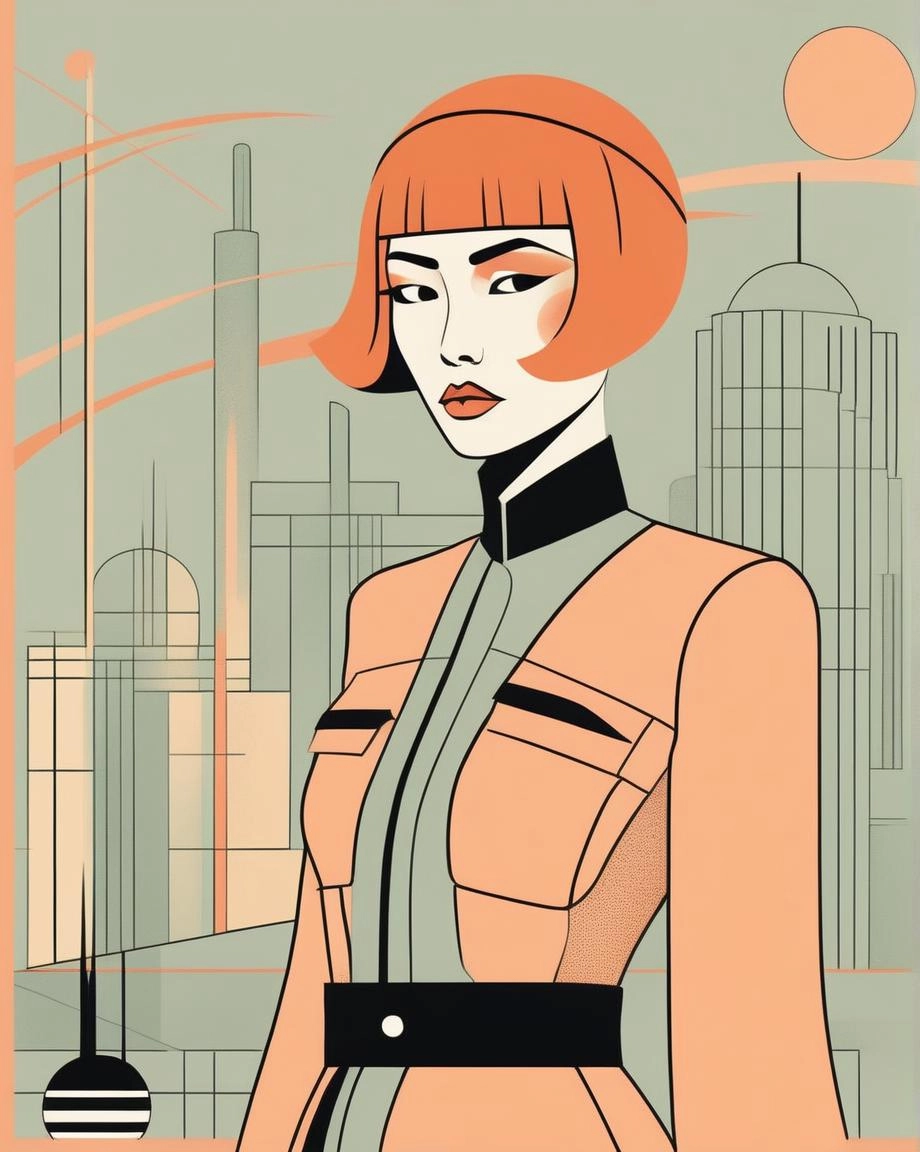 a lady (with vietnamese features) with peach-colored bob cut hair wearing battle dress