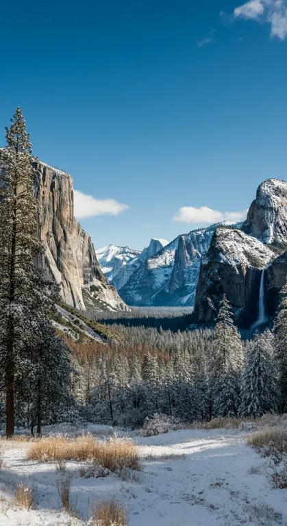 Yosemite landscape during snowing winter season for an iphone wallpaper
