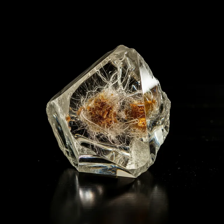 A piece of thick glass, cut in facets like a crystal, with what look like energy trapped inside, on a black background