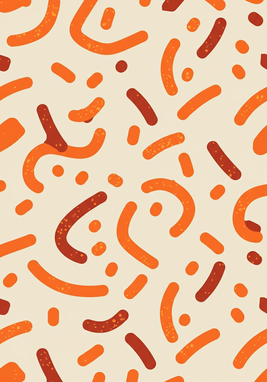 A playful, repeating pattern featuring stylized lines against a light cream background. The lines vary in size and are scattered across the canvas, each with a lightly speckled texture. The design is minimalistic, utilizing bold, flat colors and simple forms to create a cheerful, lively atmosphere. The composition features an even distribution of lines, providing a balanced and visually engaging pattern with a whimsical and fresh mood.