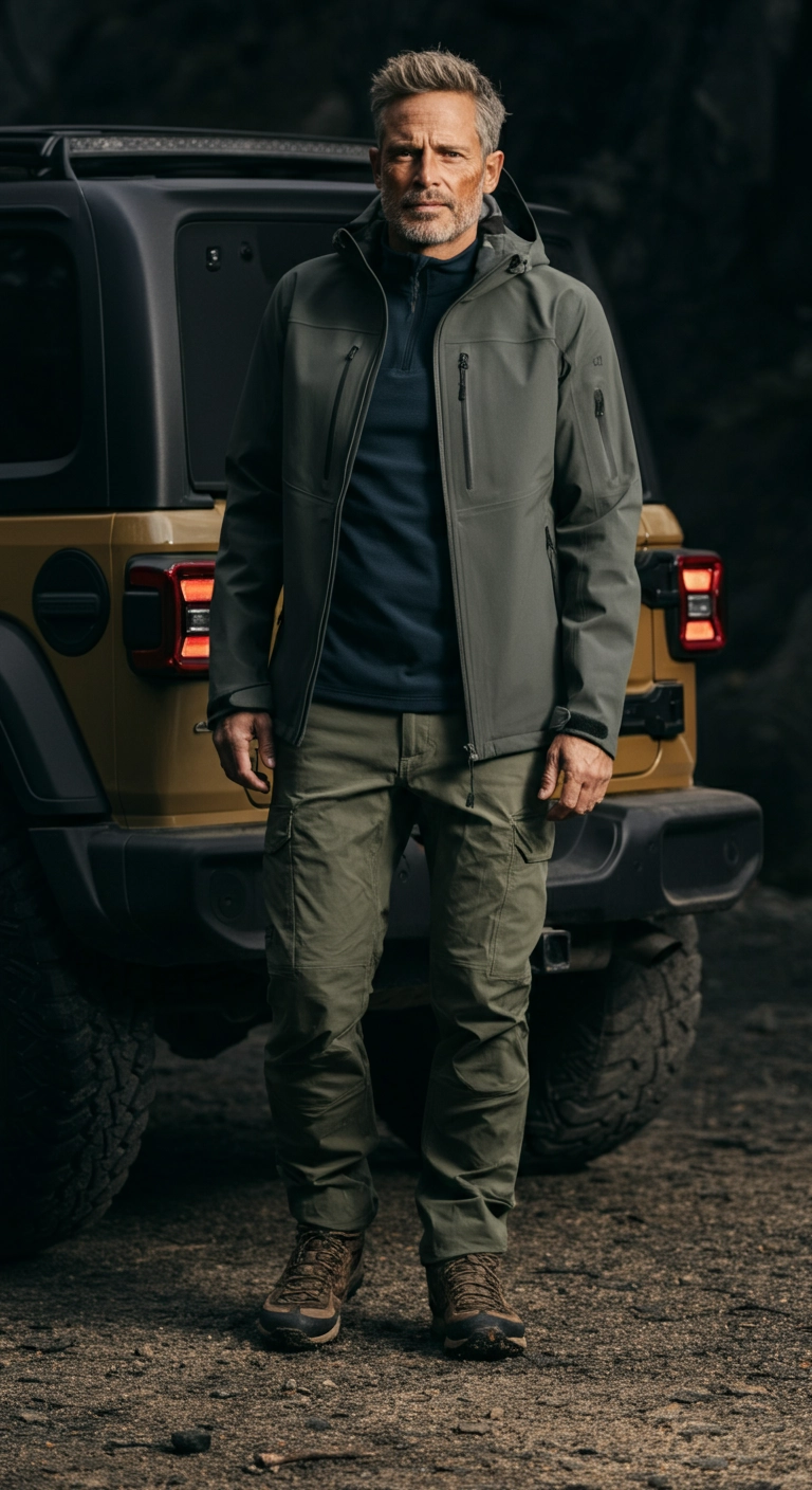 The Jeep persona is the quintessential adventurer, often seen wearing outdoor gear—like a rugged jacket, cargo pants, and hiking boots, ready for any terrain. Their face is weathered and sun-kissed, with a confident, determined gaze that says they’ve seen the world’s toughest trails. They thrive in remote environments, like mountain ranges, forests, or deserts, where they can put their survival skills to the test. Independent and fearless, they live for exploration and challenge, constantly pushing boundaries. This person is tough, resourceful, and bold, with an insatiable desire to explore new frontiers and tackle obstacles head-on.