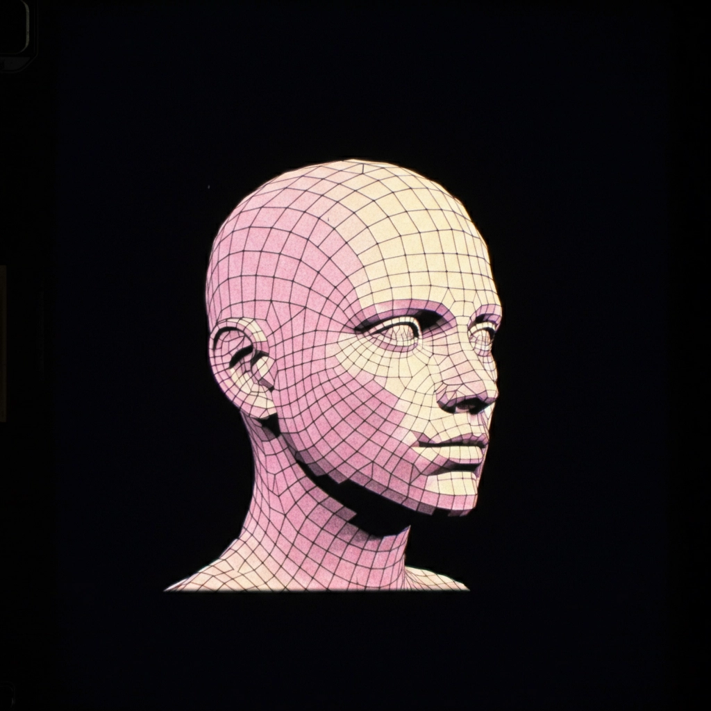 Bézier curves and black dots that make the shape of a human head using primitive geometric shapes