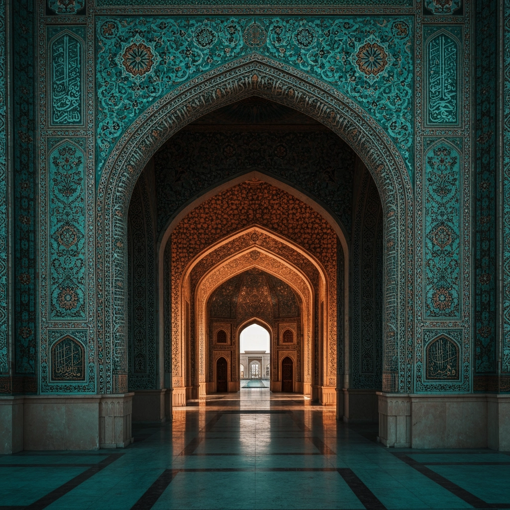 Imagine a majestic Taj Mahal-inspired monument in the heart of Ashgabat, the capital city of Turkmenistan. Design a visual representation of this stunning structure, blending Indian and Turkmen architectural styles. Key elements: Incorporate intricate tile work and calligraphy inspired by Indian and Turkmen cultures. Use a mix of warm and cool colors to evoke a sense of grandeur and serenity. Add ornate details, such as arches, domes, and minarets, to create a sense of depth and history.