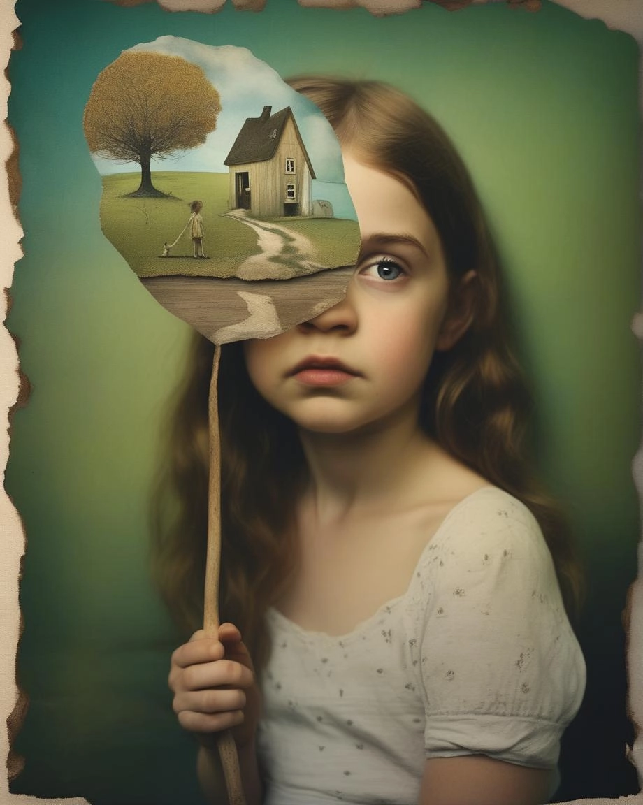 double exposure complex art by Alex Stoddard, Natalia Drepina and Brooke Shaden surreal postcard on a cracked paper, extremely dynamic, unusual , vintage