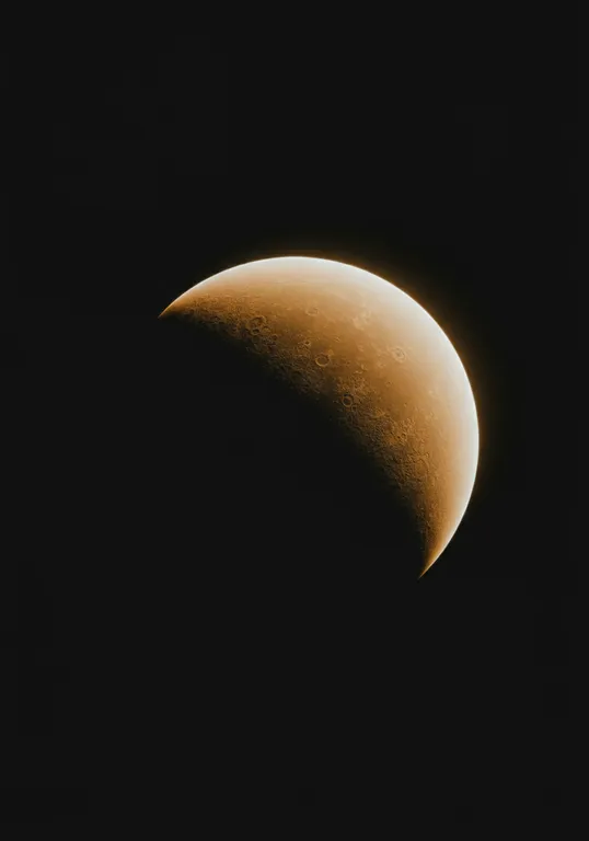 A softly lit, partially illuminated celestial body against a dark background. The orb exhibits a smooth, gradient transition from light to shadow, creating a subtle play of warm yellow and golden hues. The absence of surrounding objects focuses attention solely on the planet, emphasizing its serene and mysterious qualities. The off-center composition and gentle curvature enhance the tranquil, contemplative mood of the image, evoking a sense of wonder and exploration of outer space.