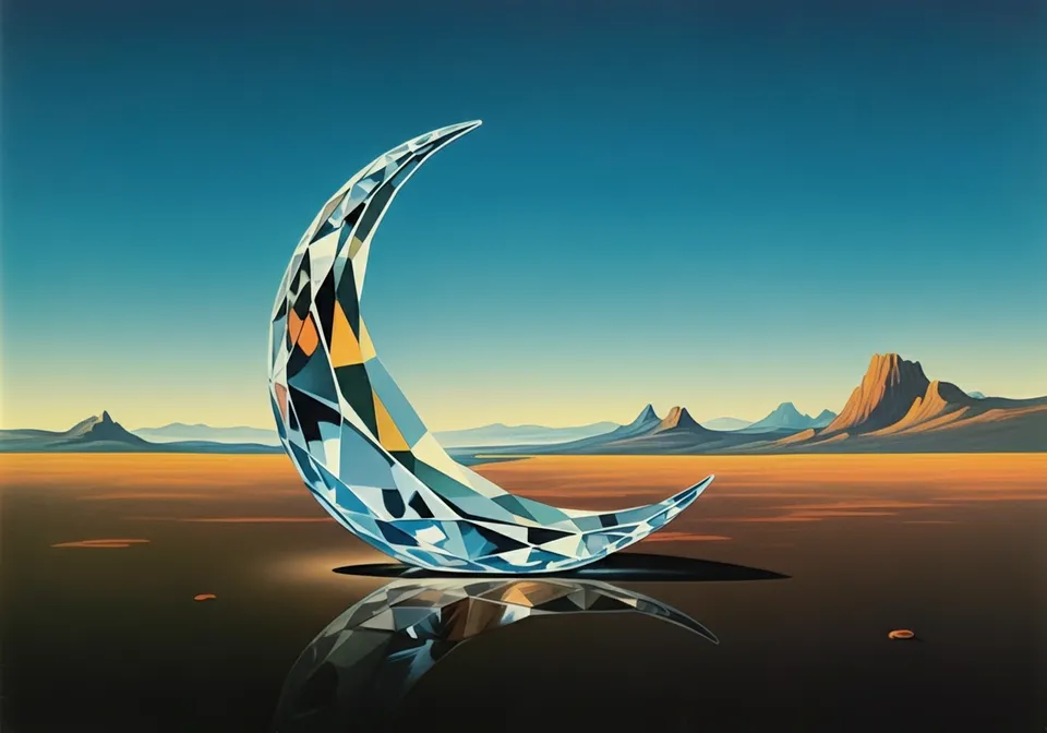 paysage surréaliste style René Magritte avec un diamant en guise de lune