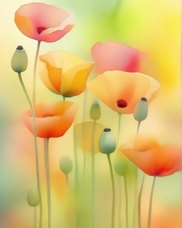 Blurred, unsharp, close up, aperture, poppy flowers, vibrant colours, dreamy, pretty, bokeh