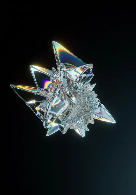 asbtract transparent 3d shattered glass with rainbow reflections