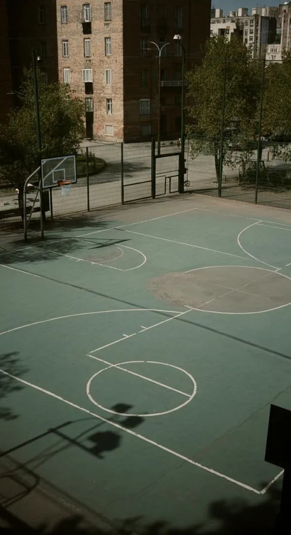 outdoor basktball court with dramatic shadows. top down.