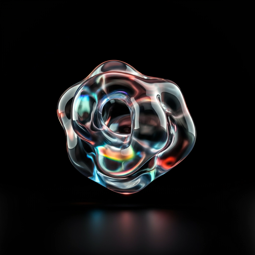 Bubble like abstract holographic shape with luminescent glowing edges, isolated on a black background