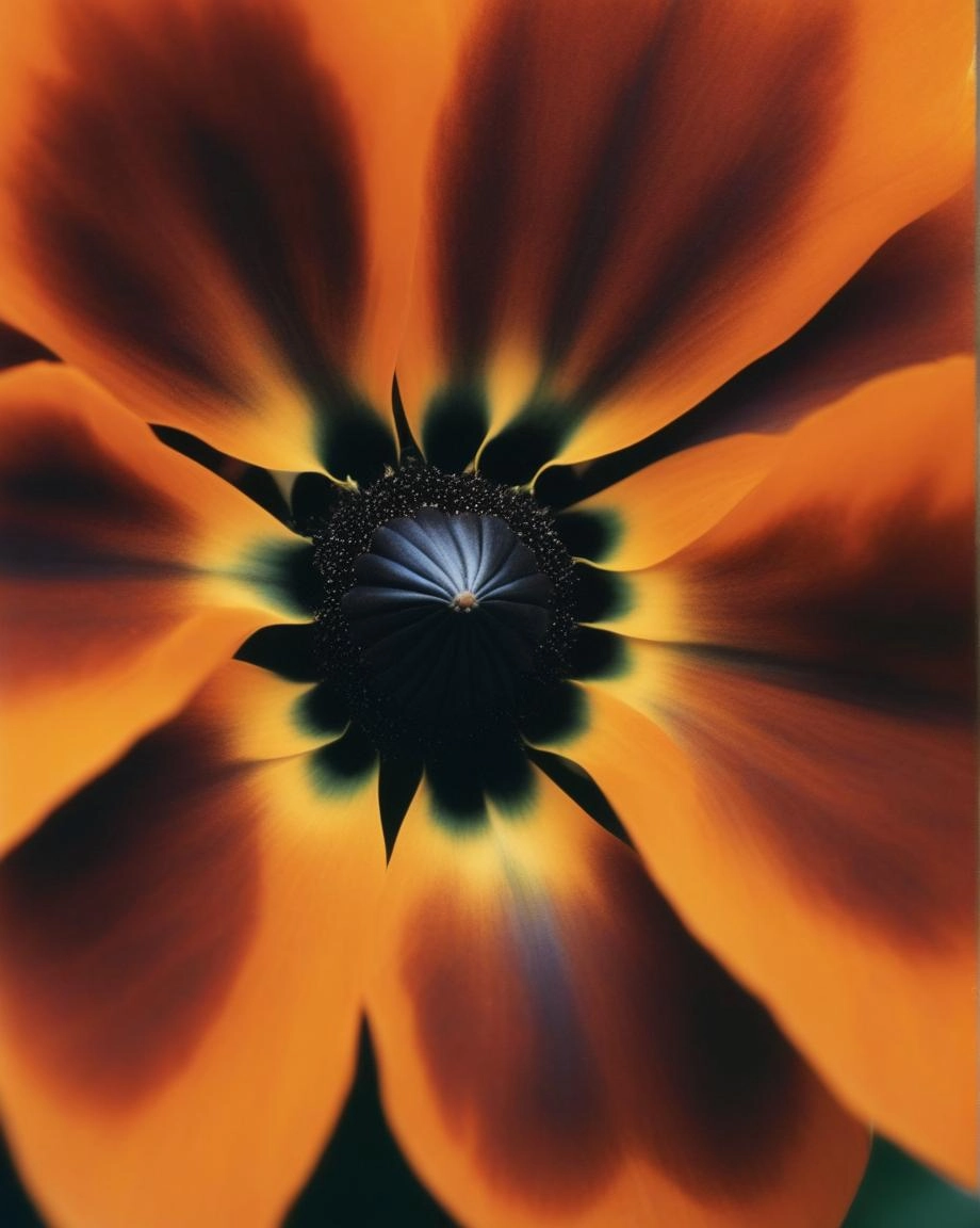 fantastical rare flower petals extreme close up from below in a flat orange background