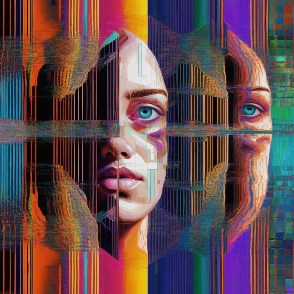 a surreal painting showing a mirror world where reflections reveal alternate realities, people mirror each other's actions in perfect symmetry, deep meaning