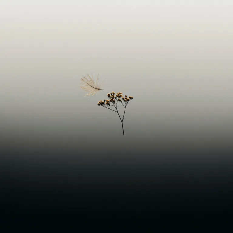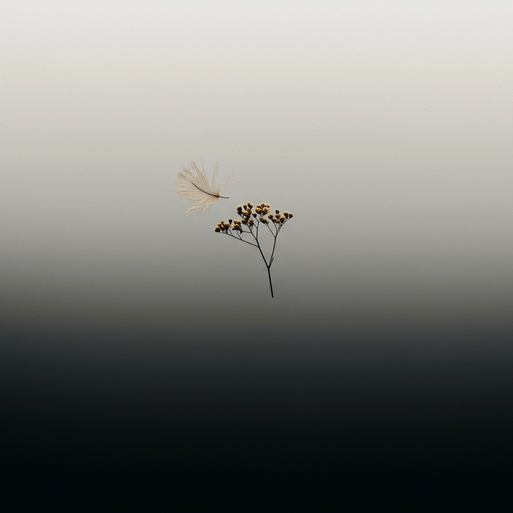 *"Serene 4K minimalist wallpaper with organic abstraction. A single delicate element — like a lone feather floating in mid-air, a wisp of smoke curling into nothingness, or a faint watercolor bloom in washed-out ochre — placed off-center against an expansive, ultra-smooth background in muted tones (think 'foggy morning' palette: soft greys, barely-there blues, or warm ivory). Subtle texture like handmade rice paper or micro-weave linen, barely visible. Lighting: Directionless ambient glow with zero harsh shadows. Style: Pure wabi-sabi tranquility, where emptiness holds weight. Resolution: 3840x2160, flawless for screens. No patterns, no geometry, no discernible shapes — only the quiet suggestion of form."*